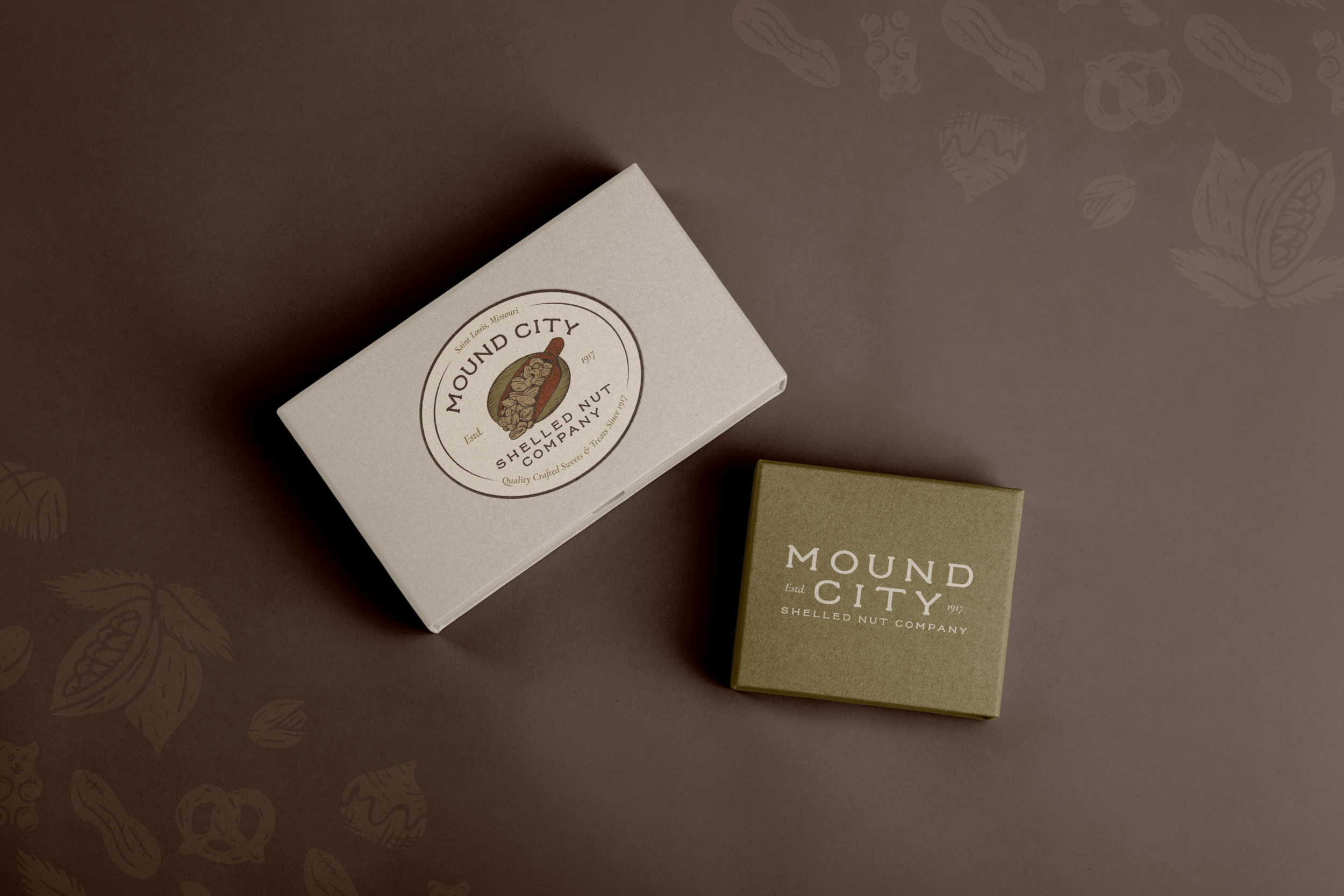Subtle grain, vintage print finishes, and layered details add depth and texture, reflecting the craftsmanship behind their chocolates and roasted nuts. The result is confident, elevated, and enduring: a brand that feels both classic and distinctly premium.